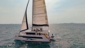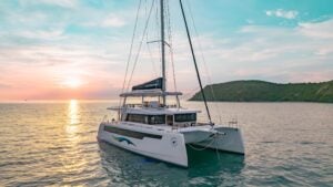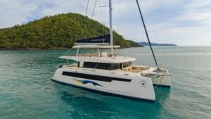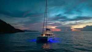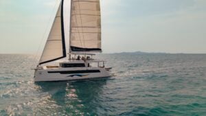 Book a bareboat or crewed charter on the Island Spirit 525. Available in the British Virgin Islands and Thailand. Experience a green, quiet, luxurious yachting adventure on the most sustainable hybrid-electric sailing catamaran.